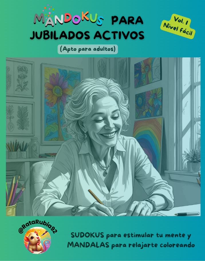 Descubre una forma diferente de relajarte y ejercitar tu mente con "Mandokus para jubilados activos. Vol. 1". Este libro está diseñado especialmente para personas mayores que desean mantenerse mentalmente activas mientras disfrutan del placer de colorear. Encontrarás una combinación armoniosa de sudokus y mandalas para colorear, pensados para generar momentos de calma, concentración y alegría.
