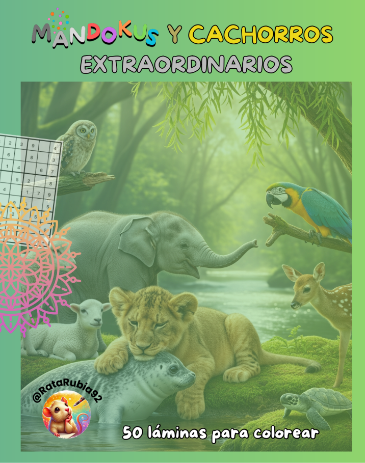 Déjate conquistar por la ternura y la fantasía de este libro de colorear para jóvenes y adultos. Aquí encontrarás 50 láminas únicas que combinan el encanto de los cachorros salvajes más curiosos con la magia de los mandalas. Un libro pensado para ejercitar la creatividad coloreando nuestros diseños, así como la estimulación de la mente resolviendo sudokus.